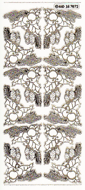 Kullanväriset/läpinäkyvät, hienokaiverretut ääriviivatarrat.