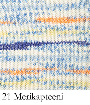 Tämän värikartan kuvat näyttävät langan raidoitusta pienessä neuleessa, kuten sukissa. Raidoitus näyttää erilaiselta/vaihtelee vaatteen suuruudesta riippuen.
