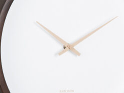 Tämä perinteisen tyylikäs ja eleetön kello on valmistettu puusta. Sen kehys on tumman puun värinen ja kellotaulu on valkoinen.