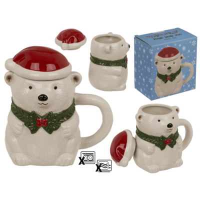 Kannellinen, keraaminen, jääkarhunmuotoinen muki.
