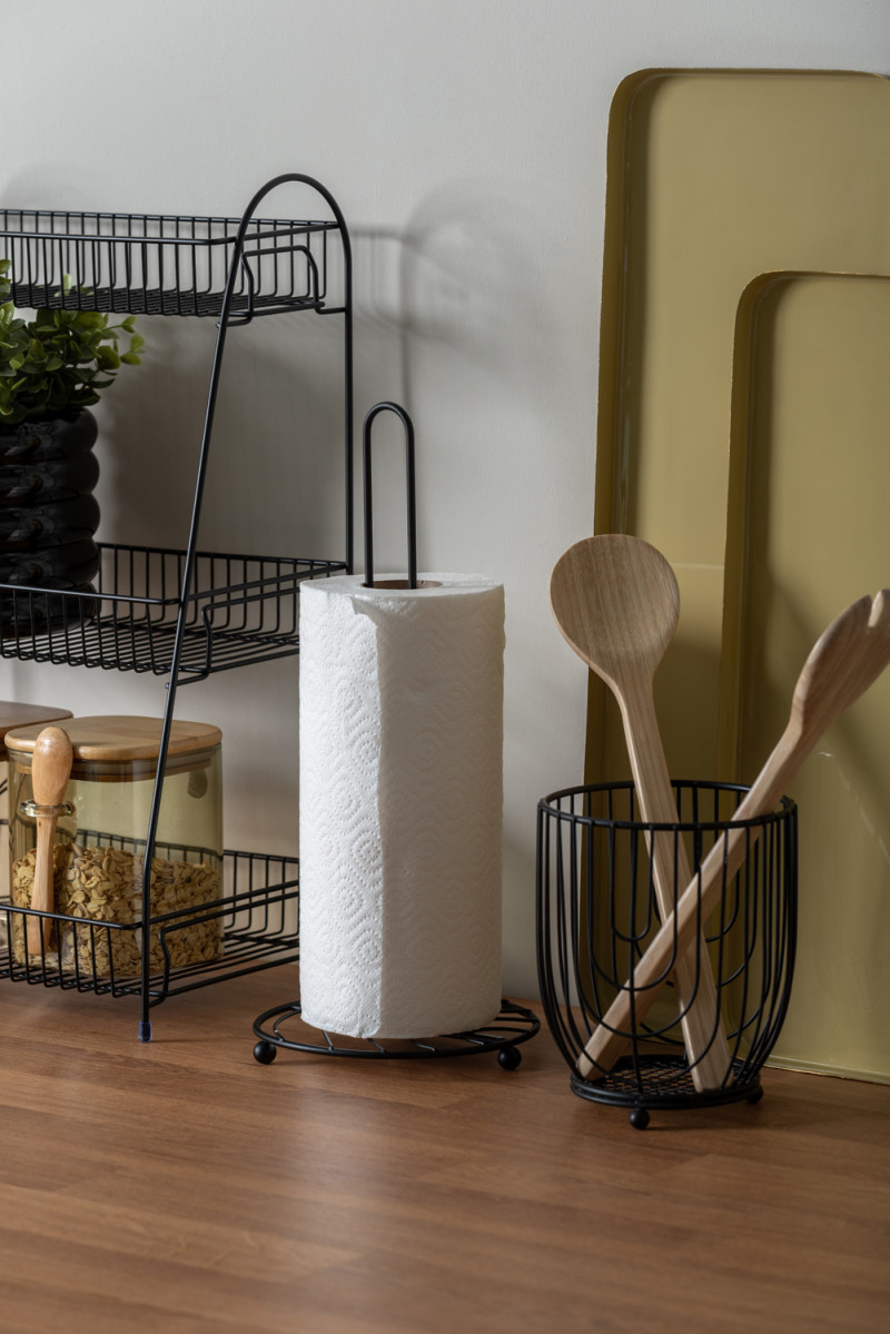 Metallista valmistettu, tukeva ja tyylikäs talouspaperirullateline.